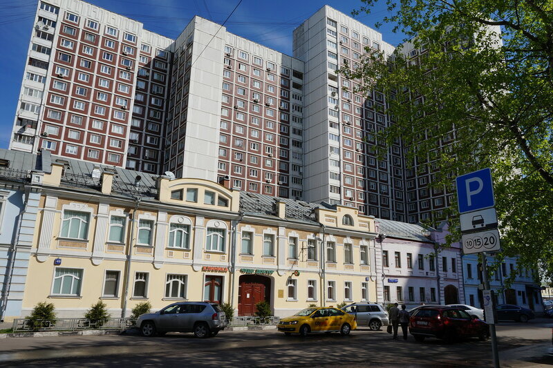 Ну а вот и та улица, которую я вам хотел показать. Знакомьтесь. Это улица Школьная. На первый взгляд ничего интересного. Обычные советские высотки. Таких по Москве много. И вряд ли там что-то скрывается интересное. Но тут не всё так просто. Стоит пройти буквально несколько метров, и переносишься в 19 век. Фактически это музей под открытым небом. Музей, запертый со всех сторон советскими высотками.