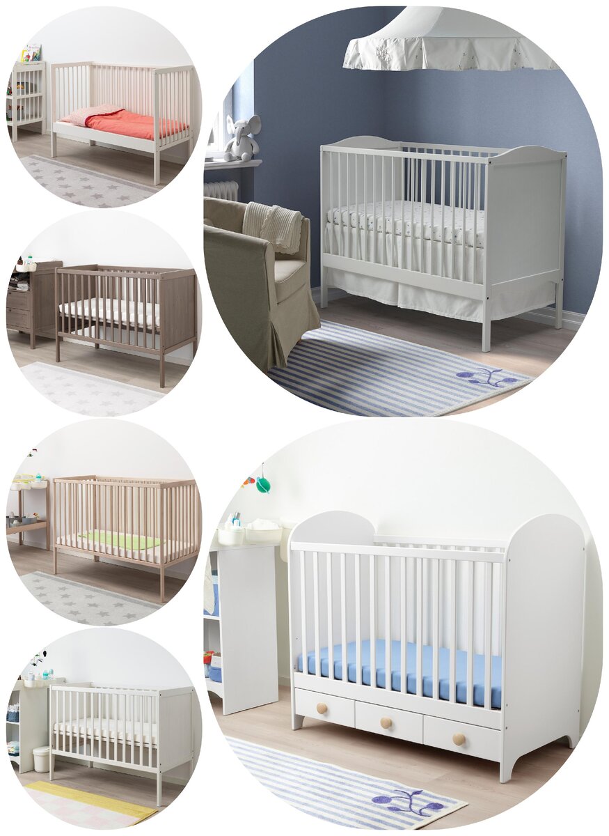 В этой статье мы рассмотрим 7 основных покупок для новорожденного ребенка в магазине ИКЕА. Все ссылки кликабельны. 1. Кроватка Размер всех кроватей одинаковый - 60x120 см. Все они изготовлены из массива бука, два положения дна, дизайн, обеспечивающий циркуляцию воздуха, по мере надобности можно снять переднюю панель. Все кроватки соответствуют требованиям комфорта и безопасности. Изготовлены из экологических материалов. Отличия: СНИГЛАР, бук 4 999 ₽ Самый бюджетный вариант. Просто эта кроватка не покрашена и имеет натуральный цвет бука. СМОГЁРА, белый 6 999 ₽ Данная кроватка имеет закруглённые края и сплошные боковые панели. ГУЛЛИВЕР, белый 7 499 ₽ Простой классический дизайн, покрыта акриловой краской, проветриваемые боковые панели. СУНДВИК, белый 9 499 ₽ Дизайн полностью повторяет кроватку ГУЛЛИВЕР, кроме того, что боковины кровати сплошные. СУНДВИК, серо-коричневый 9 499 ₽ Эта кроватка отличается от предыдущей только цветом. ГУНАТ, белый 14 999 ₽ Кроватка с плавными зак