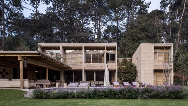 Архитектурная компания Taller Hector Barroso использовала глиняные блоки, сосну и бетон, чтобы помочь этому жилищу гармонично вписаться в лесные массивы в центральной части Мексики. Дом в Авандаро расположен в живописном городе Валье-де-Браво, который находится примерно в 150 километрах к западу от Мехико. Двухэтажное жилище расположено на участке неправильной формы, окруженном деревьями. Мексиканский эко-отель Дом был спроектирован студией Taller Hector Barroso как жилище на уик-энд для семьи из шести человек. Основная задача команды разработчиков состояла в том, чтобы создать «архитектуру, которая принадлежит этому месту и сливается с окружающим его лесом». Общая площадь - 935 м2, резиденция состоит из прямолинейных объемов, которые смешаны с открытыми пространствами, в том числе неглубокий бассейн с гранитной подкладкой. Наружные стены сделаны из бетона и сосны, а также глиняного кирпича, который был произведен в соседнем карьере. Софиты расположены между тонких деревянных
