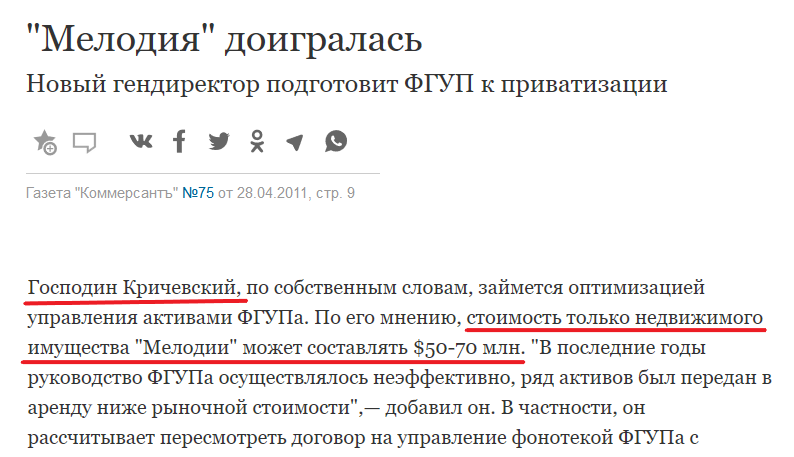 [6] Коммерсант. "Мелодия" доигралась, 28.04.2011 https://www.kommersant.ru/doc-rss/1630911