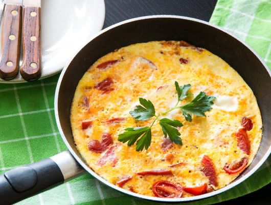 Всем привет! Утром нужно спешить на работу или учебу, но абсолютно нет времени на готовку? Сегодня я вам покажу 5 вкусных блюд на скорую руку. ► Омлет с помидорами Ингредиенты: Яйца — 2 шт. Молоко — 50 мл. Помидоры — 1 шт. Соль и Перец. Приготовление: 1) Взбейте яйца с молоком, после посолите и поперчите (по желанию) 2) Нагреть сковороду, растопить кусочку сливочного масла, вылить на нее яично-молочную смесь. 3) Нарежьте помидоры в форме кольца 4) Выложите сверху помидоры, также можете добавить еще специй и трав, после закрываем сковороду крышкой. ► Любимые гренки :) Ингредиенты: Батон – 200 г Яйца – 2 шт. Сметана – 1 ст.л. Чеснок – 1 зубчик Соль – по вкусу Растительное масло – 25 г Приготовление: 1) На сковороду поливаем масло, хорошо разогреваем. 2) В посуду для смешивания вбиваем яйца, посыпаем специями и солью. Добавляем майонез. Тщательно взбиваем до образования однородной массы с пузырьками на поверхности и оставляем настояться 5 минут. 3) В это время нарезаем хлеб.