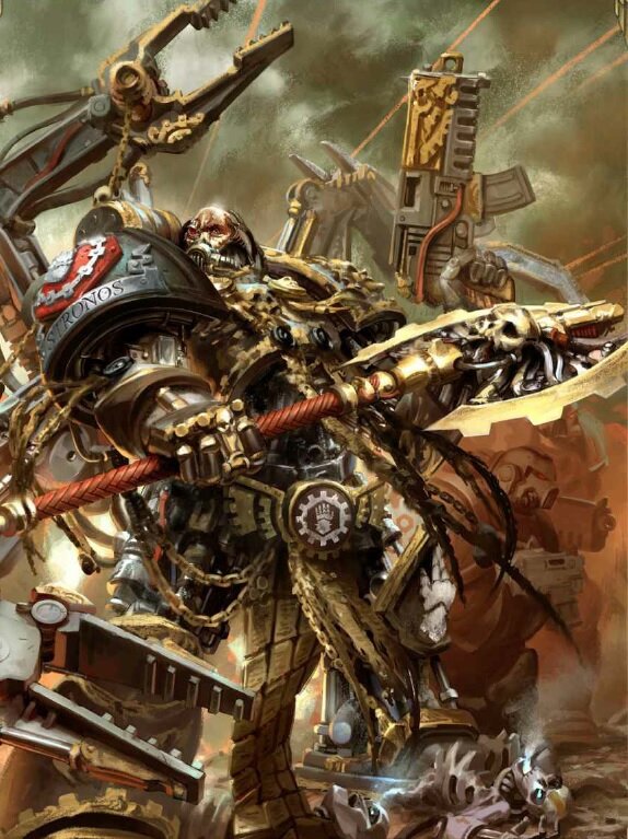 Кардан Стронос — один из немногих магистров орденов космодесанта, одновременно являющийся технодесантником. Должность технодесантника в ордене Железных Рук именуется железным отцом Стронос долгие годы служил капитаном клана Гаррсак, прежде чем был введен в должность капеллана Железных Рук, и в конечном итоге отправился на священный Марс для обучения в качестве технодесантника. Его почтение к машине и ненависть к слабости позволили Кардану занять место в Совете Кланов, а его безжалостность и стремление к победе сделали технодесантника лучшим кандидатом на должность магистра ордена, взяв на себя всю власть и ответственность за кампании, вовлекшие несколько клановых рот и передачу власти обратно Совету Кланов по их окончании. С 760.М41 Стронос был в Железном Совете в качестве магистра ордена в течение 300 лет подряд, что делает его самым опытным лидером Железных Рук со времен Ферруса Мануса. Под его руководством Железные Руки уничтожили Waaagh Дрезгнода и ренегатов-хаоситов Кровавых
