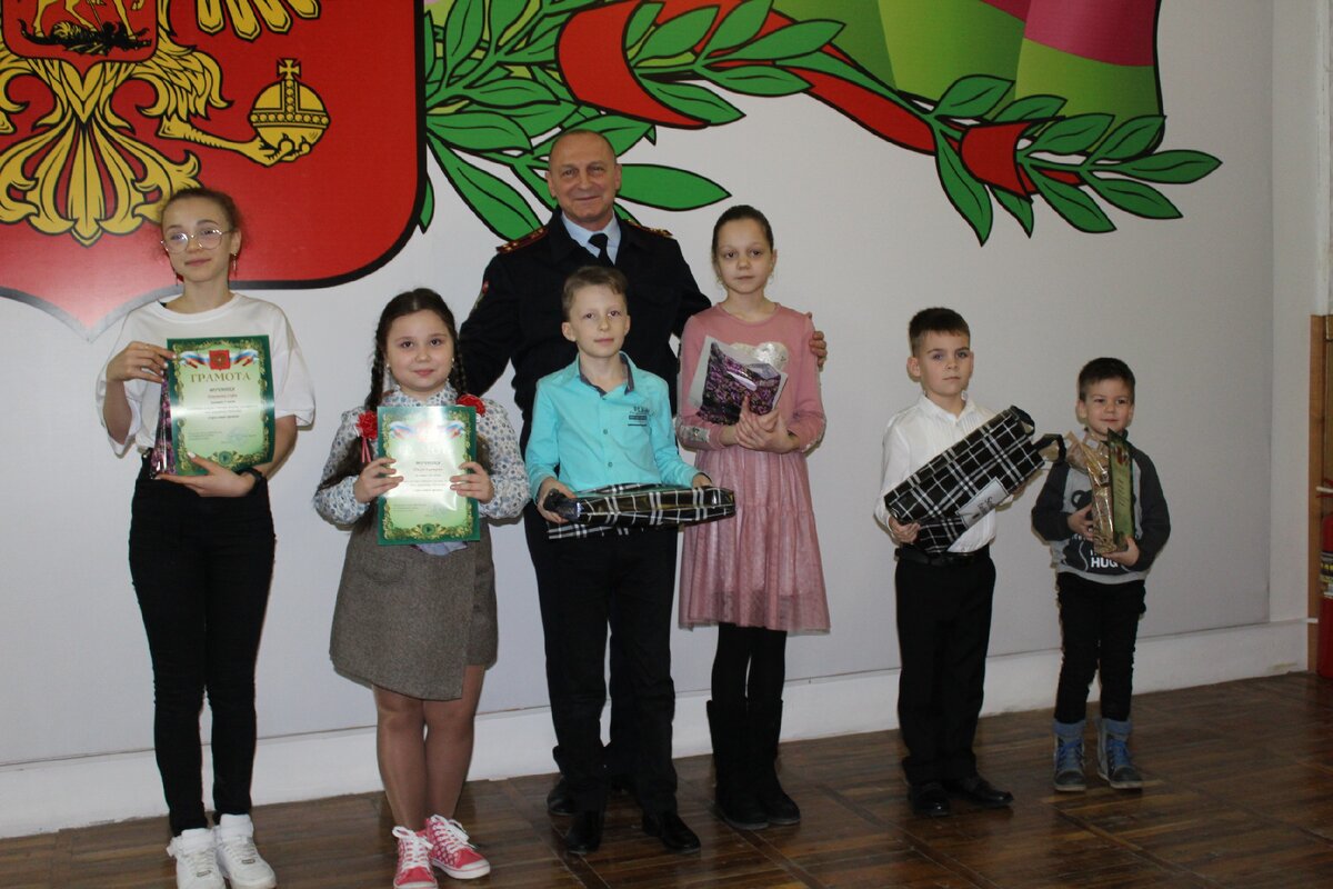 В торжественной обстановке начальник Отдела МВД России по Темрюкскому району вручил восемь грамот победителям конкурса рисунков, посвященного Дню защитника Отечества на тему «Герои нашего времени». Основные цели конкурса – создание благоприятного морально-психологического климата в коллективах подразделений полиции, формирование чувства гордости за профессию в семьях сотрудников органов внутренних дел и развитие творческих способностей у детей. В мероприятии приняли участие 46 детей. Жюри конкурса, в состав которого вошли члены Общественного совета – председатель творческого союза «Троя» Владимир Гресс и председатель ветеранской организации МВД Николай Каунев, отметило высокий уровень качества представленных работ. В связи с чем были выбраны по несколько работ каждого призового места. Начальник Отдела полковник полиции Александр Лишута вручил детям почетные грамоты и памятные подарки: Софье Евтушенко, Михаилу Коляде, Богдану Кобзарь, Марии Тупович, Данилу Малявко, Екатерине Тихой, Анге