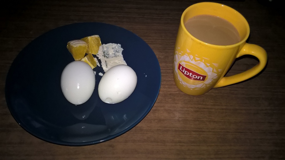 Сегодня на день: Завтрак: 2 яйца, 3 небольших дольки апельсина, 1 небольшой кусочек сыра с плесенью (моя очередная отсебятина) Перекус между завтраком и обедом: 2 соленых помидора (вместо 1 свежего) Обед: полюбившийся мне за это время крем-суп вместо отварных овощей (гороховое пюре, вода, кусочек моркови, зеленый лук), хлеб Ужин: 100 грамм обезжиренного творога с 1 соленым огурцом Итоги дня: на перекус между обедом и ужином было 1 яблоко. Второй день добавляю в кофе сахарозаменитель с нулевой калорийностью. Начала чувствовать голод. Возможно, дело именно в сахзаме.