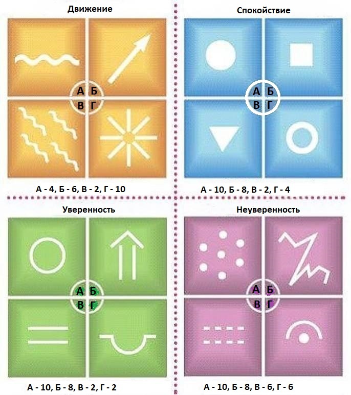 Внимательно посмотрите на эти 16 символов. Из каждой группы выберите по одному, больше всех вам понравившемуся символу. Выберите тот, который как бы олицетворяет вас. Подсчитайте общее количество очков. Ниже приведены результаты теста. 8 - 13 очков. Ваше поведение на данный момент в большей степени зависит от мнения окружающих. Вы легко поддаетесь влиянию. Для вас стоит больших усилий делать то, что вам не нравится. Слово "надо" вас просто сбивает с толку. Подозрительность вам мешает в общении с людьми. Сложно сказать, что вы являетесь хозяином своих решений. Вы довольно обидчивы, трудно справляетесь с эмоциями. 14 - 20 очков. Вы ищите свой путь, хотя пока что плывете по течению. Вы в состоянии критично оценивать свои действия. Окружающим трудно на вас подействовать, кроме тех случаев, когда у них есть веские аргументы. Если здравый смысл вам подсказывает, что та позиция, которую вы отстаивали, неверна, вы довольно легко можете от нее отказаться. 21 - 27 очков. В глубине души вы уве