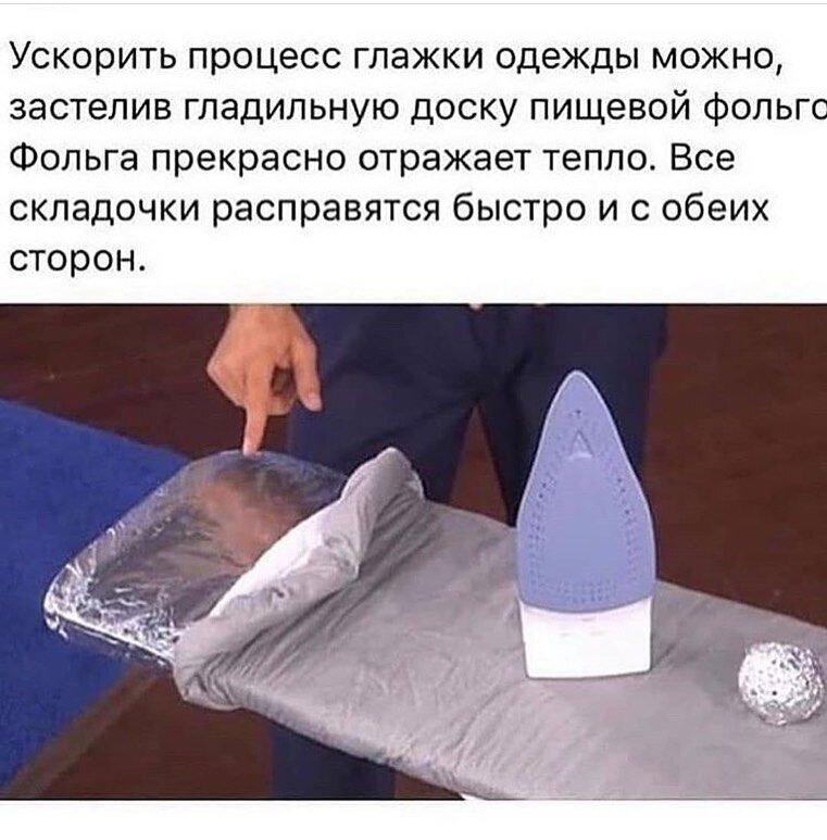 Ускорить процесс глажки одежды можно, застелив гладильную доску пищевой фольгой
