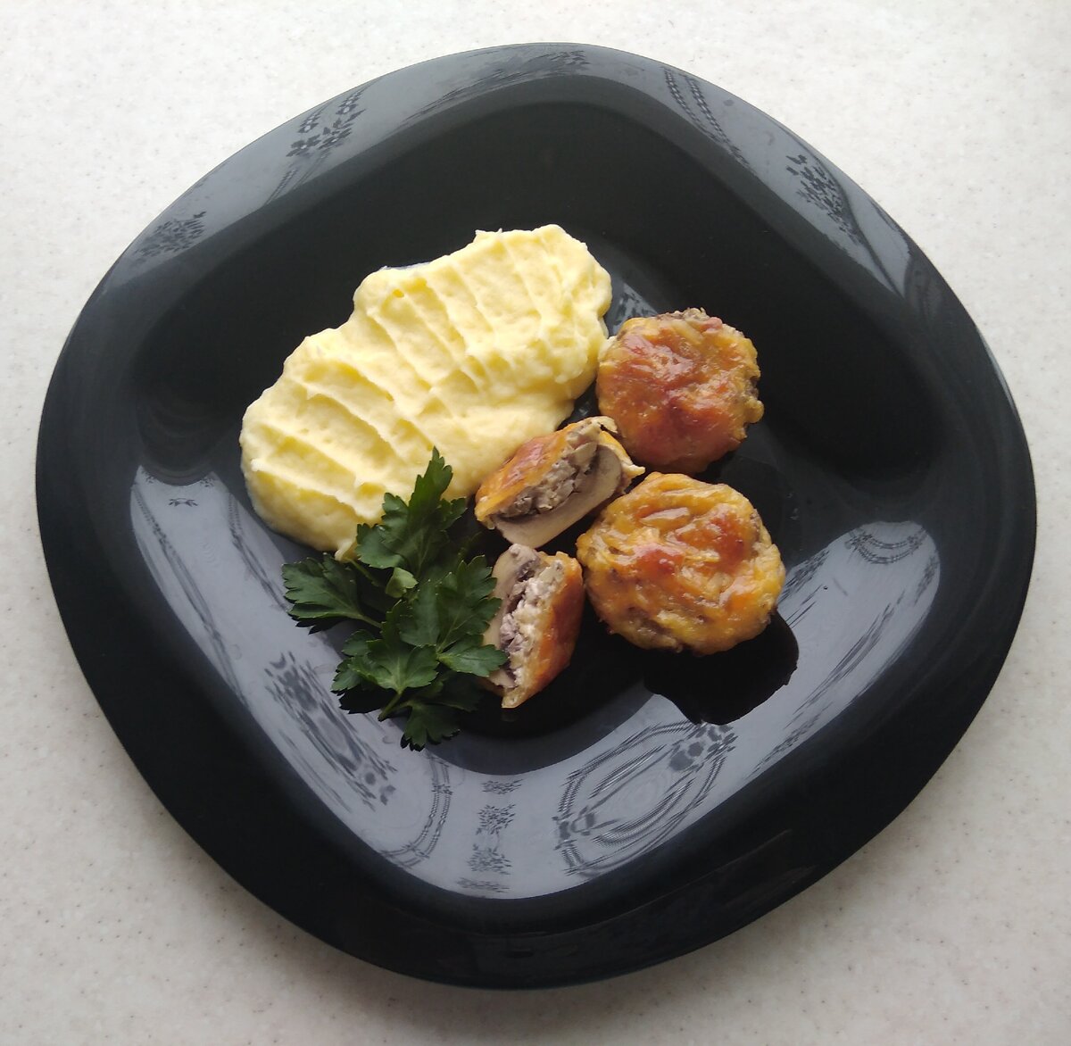 Быстрая и вкусная закуска. Фаршированные грибочки под сыром.