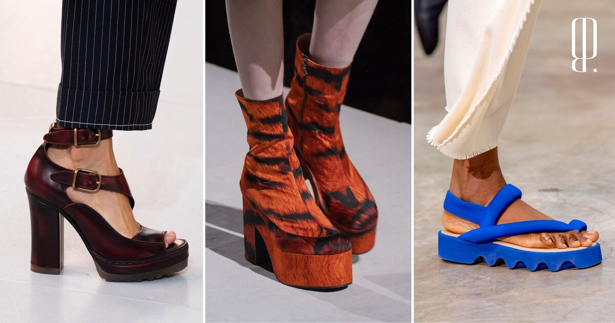 Хотите приобрести одну пару босоножек, которая будет отлично служить вам годами? Приобретите обувь с массивной платформой, которая была особенно популярной в 70-х (и, как мы знаем, была позаимствована еще из тенденций 40-х). Ситуация в точности повторяет любовь дизайнеров и селебрити к классическим лодочкам на шпильке. Какие бы тенденции ни были ключевыми в сезоне, как бы стремительно остроугольный мыс в fashion-отчетах ни сменялся квадратным, из сезона в сезон мы видим, как крепнет любовь дизайнеров к обуви на массивной платформе.