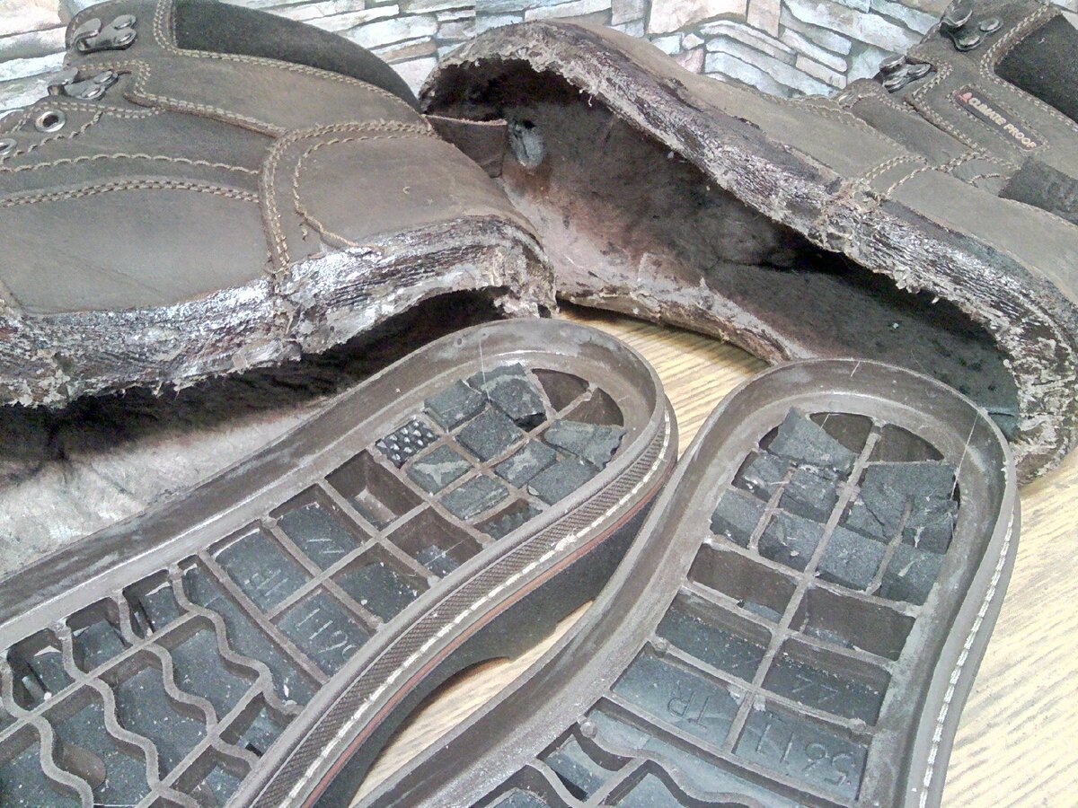 Итак, если мы терпеливо выполняли всё ранее написанное, то у нас сейчас есть уже намазанная подготовленная подошва и намазанная заготовка. Всё это уже высушено. Обратите внимание - основную стельку мы не вставляли. У нас нет колодки. Просто жирно мажем ещё один слой полиуретанового клея и сразу, без просушки, устанавливаем верх в подошву, прижимая. Так делать нельзя, но можно. Могут быть какие-то щели. Это не должно нас смущать. Берём специнструмент (в любой аптеке),набираем клей и аккуратно загоняем в щели, прижимая, чтобы остался на обеих сторонах и сушим. Шить жидкий клей нельзя! Можете разорвать подошву. Когда высохнет - берём девчачий фен для волос, греем и клеим. Дальше давайте сделаем простую операцию: Прихватим в двух точках - спереди и сзади - нитками. Можно ещё с боков. Буквально пару стежков. Это предотвратит перекашивание заготовки. Начинаем шить. Нитку я советовал бы взять вощёную плоскую. Понятно, что это не воск, но намокать она не будет. Ещё момент. Если мы ремонтировал