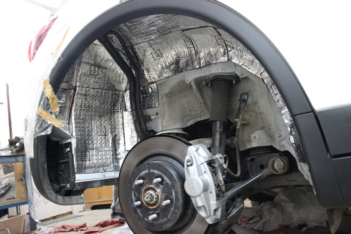 Шум от колес достаточно отчетливо слышен в салоне автомобиля. Чтобы свести его к минимуму, выполняется шумоизоляция подкрылков автомобиля. Подобные работы можно доверить квалифицированным специалистам или выполнить самостоятельно. В результат, будет убраны раздражающие удары камней по колесным аркам и резины на большой скорости. Какие материалы применяются Первостепенно нужно разобраться, чем обклеить подкрылки для шумоизоляции автомобиля. Выделяется три основных материала для этих целей: Шумоизоляция подкрылок автомобиля может проводиться как одним материалом, так и сочетанием нескольких. Шумоизоляция своими руками – основные работы Если решено действовать самостоятельно, тогда придерживаемся следующего плана: Убрать загрязнения с арок удобнее всего с помощью моющей машины. Сильный напор воды сделает поверхность идеально чистой. Прежде чем наносить шумоизоляционные материалы, закрываем те части кузова, на которые не будут покрываться. Используем для этих целей обычную полиэтилен