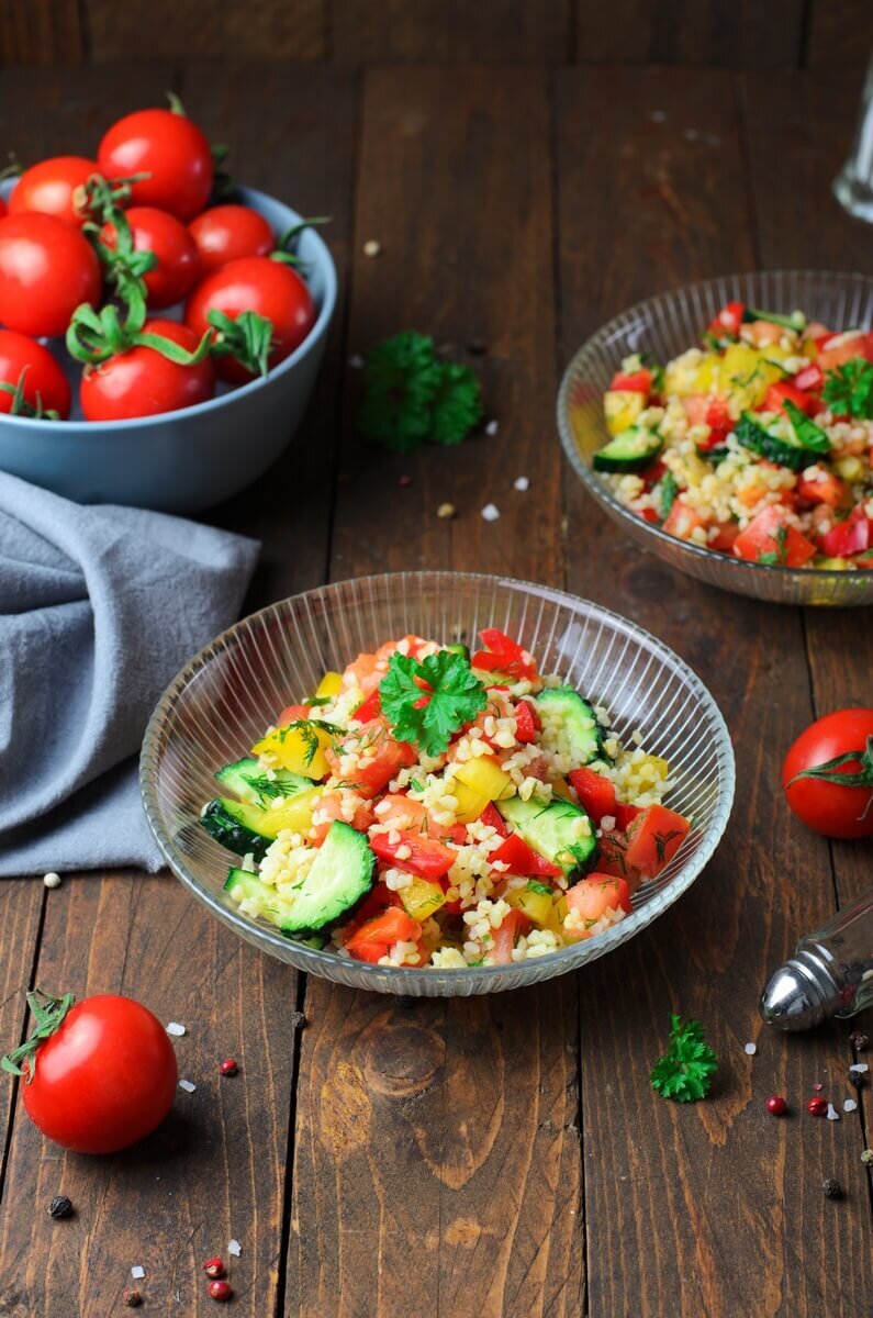 Ближневосточный салат #табуле – яркий, сытный, вкусный! Этот аппетитный салат из булгура, овощей и зелени прост в приготовлении. К тому же это полезный и сытный перекус или легкий гарнир к мясу или рыбе. В этом салате нет животных белков, а значит его можно смело включать в #постное меню и #вегетарианский рацион Ингредиенты: ✔️ На 100 г: ≈ 94 ккал. БЖУ: 3/3/15.
