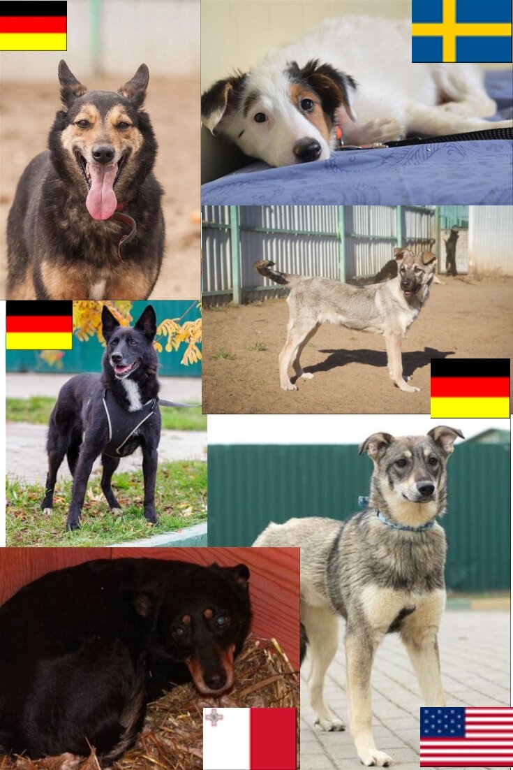 Собаки Кожуховского приюта которых нашли хозяева из других стран. Все благополучно добрались (с помощью волонтеров разумеется) и устроились с комфортом на новом месте. Это только февраль 2020 года. Выборочно, на самом деле нашли больше, и кошки тоже уезжают бывает. Продолжаем работать. Друзья напоминаю: нужны попутчики в другие страны, сейчас очень нужно США и Канада, многие не могут уехать сами без сопровождения, хотя ручки их ждут!