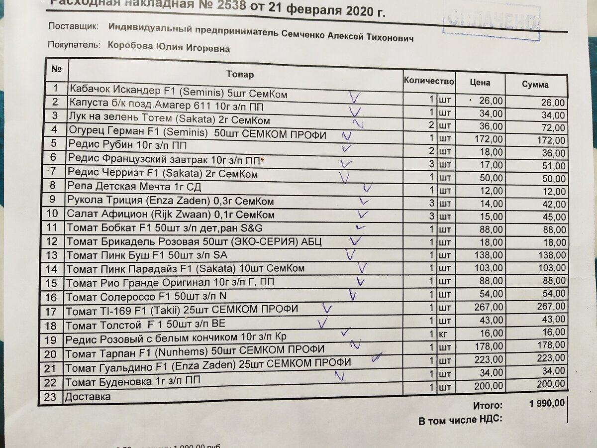 Друзья, всем привет 👋 . Долго не было желания писать, но тут не могу не поделится радостью! В этом году, я решила попробовать семена томатов зарубежной селекции. Сделала заказ у компании Семком. Заказывала не только помидоры. Вот накладные всего заказа. И вот наконец то получила посылочку. Все хорошо упаковано. Есть описание каждого гибрида. Почти все семена имеют защитную оболочку, т.е обработаны от болезней. Дополнительного замачивания, такие семена не требуют. Очень долго сомневалась в составе заказа, несколько раз меняла заказ почти полностью. Окончательный список такой: 🍅Томат Тарпан F1(розовый, дет.) 🍅Томат Бобкат F1 (красный, дет) 🍅Томат Пинк Буш F1(розовый, дет) 🍅Томат Солероссо F1 (красный, дет.) 🍅Томат Рио Гранде (красный, дет.) 🍅Томат Толстой F1 (красный, индет) 🍅 Томат Пинк Парадайз F1 (розовый, индет) 🍅Томат TI-169 F1 (желтый, индет) 🍅Томат Гуальдино F1 (жёлтый, индет) 🍅Томат Брикатель Розовая (розовый, индет) 🍅Томат Буденовка (красный,