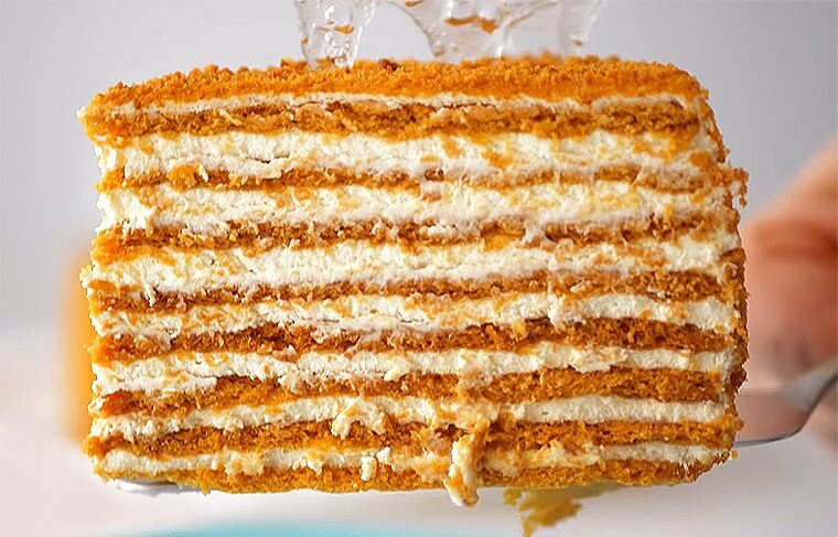 Рецепт дан на 4 коржа диаметром 20 см. Можно печь пластами и собирать торт из прямоугольников.