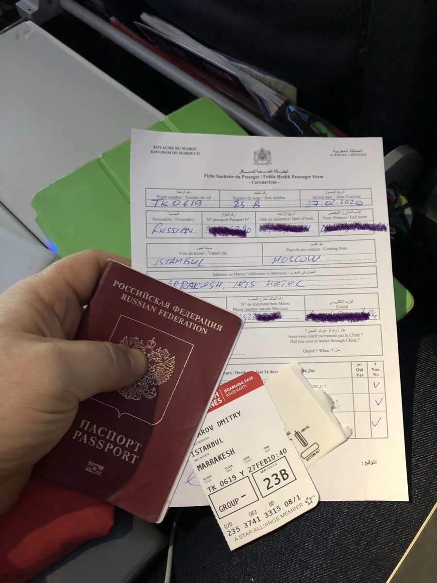 Пока ученые бьются над вакциной и эффективными лекарствами от внезапной чумы 21 века, бюрократы по всему миру предлагают свои методы. Так, меня при поездке в Марракеш попросили задекларировать коронавирус. Серьезно! Дали бумагу, которая так и называется: «Публичная пассажирская форма. Коронавирус». Суть простая - откуда летишь, где делал пересадку. Отдельно просят отметить, бывал ли в Китае в последнее время. Странно, но Италию и другие страны, где уже официально признали наличие заболевших, в список подозрительных мест, не внесли. Пока что, видимо. Зато предлагается честно ответить на вопрос, контактировали ли вы с больными коронавирусом, тусовались ли в больницах или лабораториях, где работают с больными. Ну и написать , поднималась ли у вас температура в последнее время выше 38 градусов. Ну, как бы ты такой подозреваешь, что мог где-то заразиться, пытаешься куда-то свалить подальше, но готов искренне поделиться своими страхами. Вообще, я лично ожидал какого-то специального дви