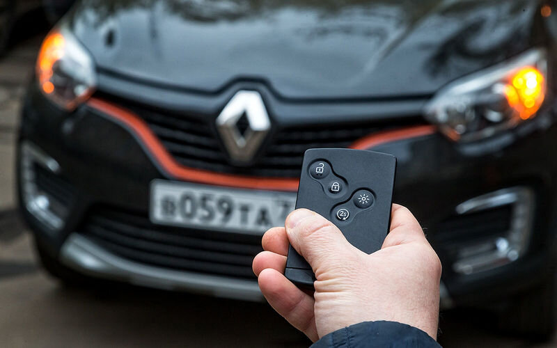 У автомобилей Рено Каптур есть штатный (заводской) автозапуск двигателя. И это очень удобно. Не требуется вмешательство криворуких установщиков сигнализации в электрику машины. Двигатель можно запустить дистанционно, нажав кнопку с замочком и тут же нажав и удерживая кнопку с надписью 2s. Моргнут поворотники и двигатель запустится. Машина заведётся даже если живёшь на девятом этаже, дальности действия передатчика для этого хватает. Но если комплектация машины подороже, то не обязательно каждое зимнее утро доставать ключ из кармана. Можно запрограммировать запуск двигателя с вечера. Есть два варианта - выставить время на определённый час, скажем, на семь утра. И есть второй вариант - сделать прогрев двигателя каждые два часа. Это если зима холодная, чтоб машина была всё время прогрета. Сейчас покажу, как с штатного головного устройства под названием "Медианав" выставить время на один автозапуск. Для этого ставим машину на ручник, передачу на нейтраль. На экране магнитолы жмём кнопку вни