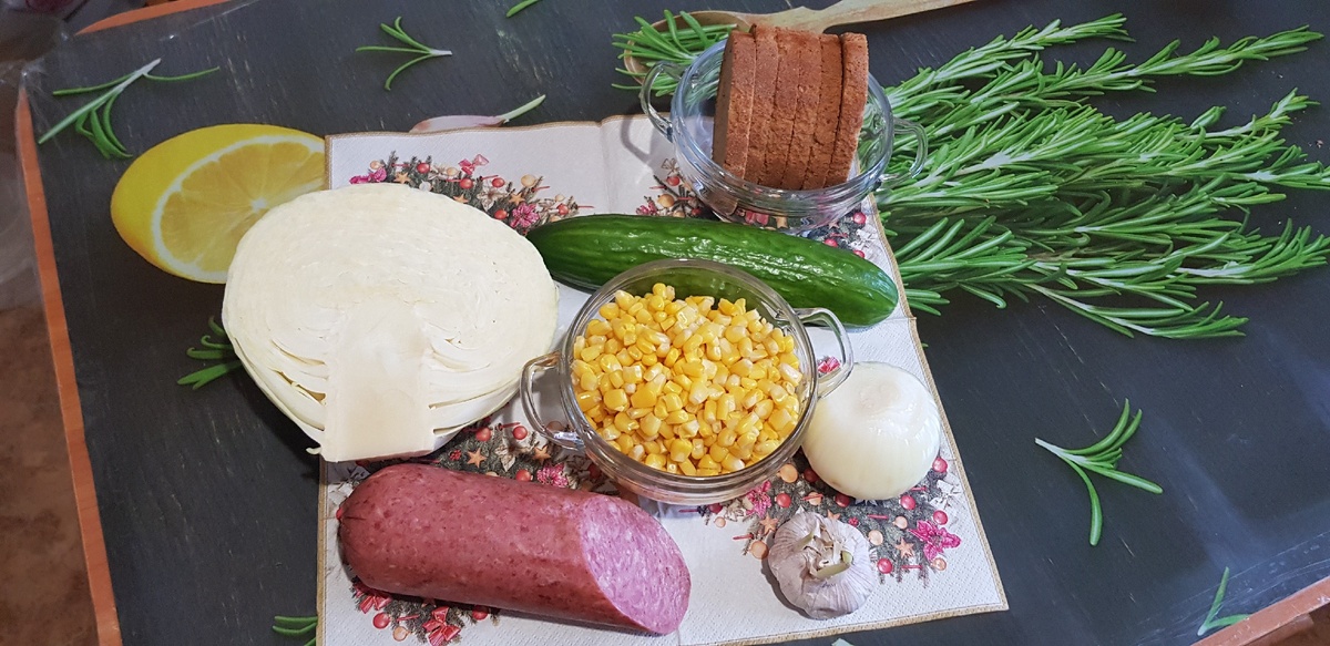 Здравствуй уважаемый читатель. Сегодня хочу поделиться с Вами рецептом легкого салата. Меньше слов, больше дела. Поехали... Нам понадобится: Способ приготовления: Нужно приготовить сухарики. Берем сковородку разогреваем. Режем ржаной хлеб на кубики и чистим чеснок. Нарезанный хлеб выкладываем на разогретую сковородку и сушим до образования корочки ~ 3 минуты. Выдавливаем туда чеснок, через чеснодавку и обжариваем две минуты. Выкладываем в миску и даем остыть. Берем копченую колбасу и нарезаем её кусочками. Берем лук и мелко нарезаем. Берем свежий огурец и нарезаем полосками (брусочками). Нарезаем мелко капусту. Берем большую глубокую миску и выкладываем туда, все наши ингредиенты. Добавляем майонез и хорошо перемешиваем. И можно подавать к столу. Приятного Вам аппетита!!! Так же хочу поделиться с вами рецептами: Подписывайтесь на мой канал Рецепты по Секрету, ставьте лайки и поделитесь рецептом. И конечно же, готовьте с удовольствием. Всех благ Вам.