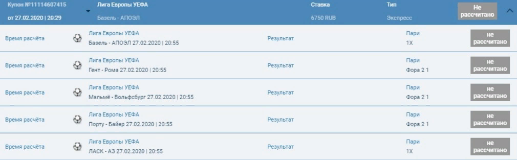 Экспресс на Лигу Европы с коэффициентом 3 на 27.02.2020(экспресс прошёл)