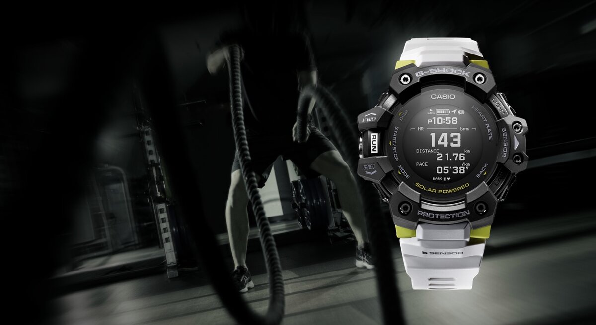Компания Casio представила новую модель защищённых часов G-Shock — G-SQUAD GBD-H1000. Это самые «умные» часы производителя на сегодняшний день: новинка получила сразу пять датчиков для измерения различных показателей. В новой серии четыре расцветки: полностью чёрные часы, чёрные с красными элементами, модель с белым ремешком и салатовыми элементами, а также полностью красные с чёрным циферблатом. Продажи стартуют 24 апреля этого года. Цена составит около 450 долларов (примерно 30 000 рублей). Что умеют часы? Новые G-Shock получили датчик измерения частоты сердечных сокращений. Исходя из полученных данных и скорости бега, часы рассчитывают потребление кислорода на килограмм веса за одну минуту. Эти данные актуальны для контроля тренировок на выносливость. Также присутствует компас, альтиметр, акселерометр и термометр. Для связи со спутниками и получения информации о местоположении используется GPS и ГЛОНАСС. В приложении на смартфоне будет доступен пройденный маршрут. И поэтому часы н