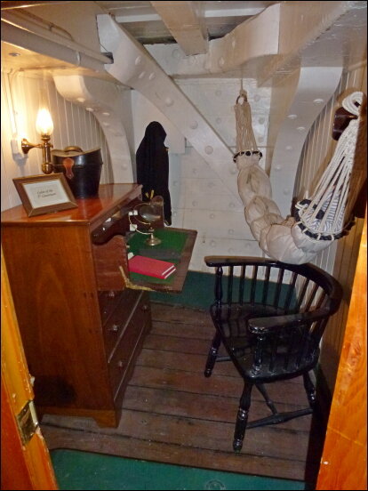 Речь пойдёт о времени, когда корабли стали делать из металла, а вот двести лет назад ни о какой роскоши вообще речи не шло. Вот офицерская каюта на американском фрегате "Констеллейшен", являющемся теперь музеем: