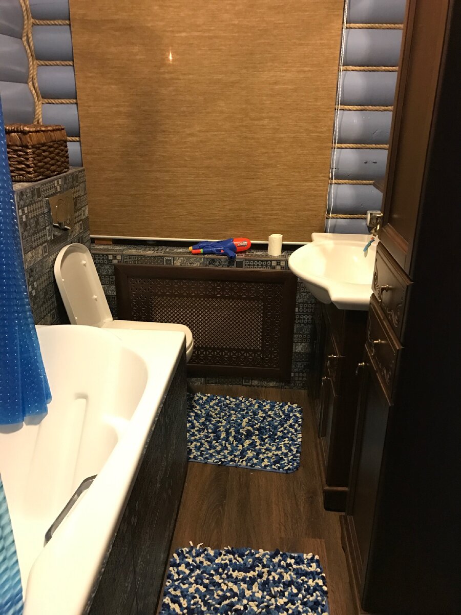 В своём доме привык все делать сам, своими руками. Недавно сделал ремонт в ванной. Она маленькая, всего 3 квадрата. Но получилось все что надо вместить. Показываю что получилось: Стену с окном просто покрасил. На поо положил виниловую плитку. Ее совсем немного понадобилось. Ванну поставил большую и удобную. По периметру обложил плиткой. Установил недорогой душ с большой лейкой. Удобно. Как под дождем. Унитаз подвесной со встроенным в стену бачком. Инсталляция. Поместился и гарнитур. Большая раковина и достаточно вместительные шкафчики, даже шкаф-колонна поместился. Ну и большое зеркало. Куда ж без него. 😎
