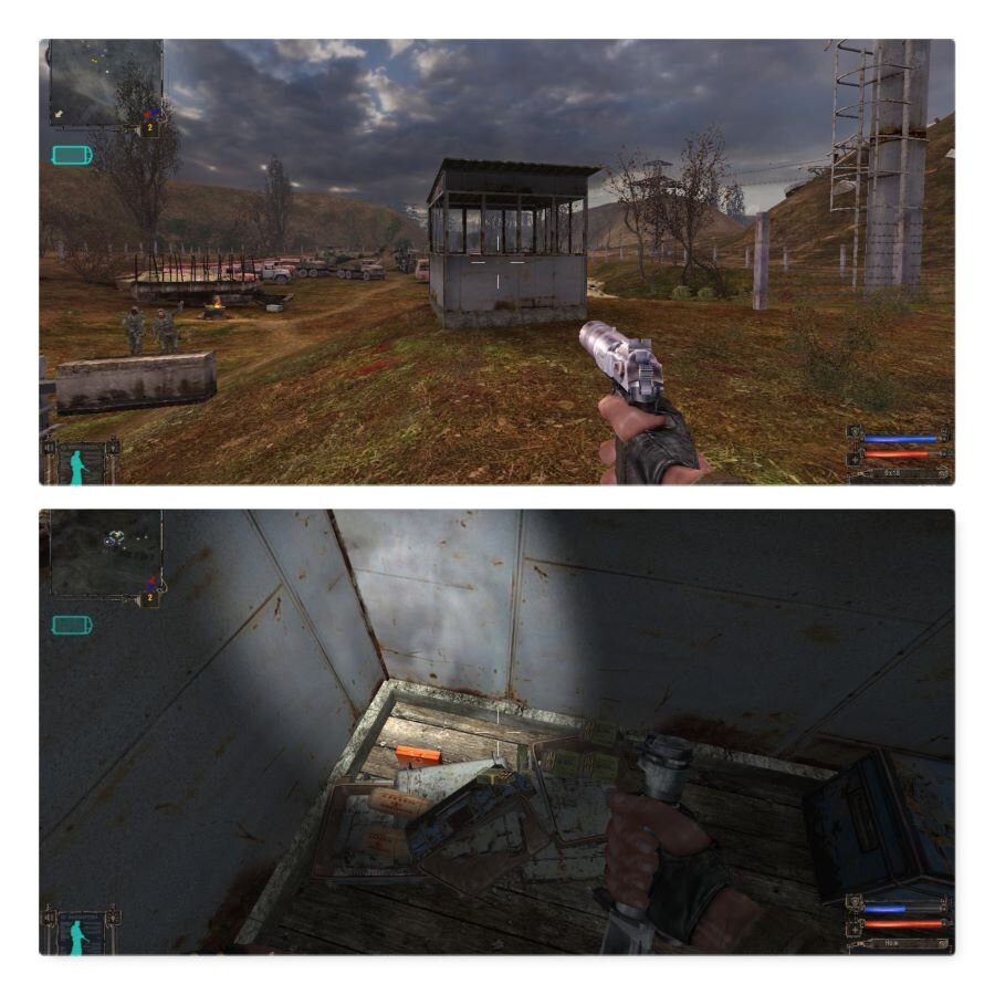 Вот мы на локации под названием Свалка. Здесь есть тоже не мало мест чтобы поживиться на халяву. Ну что ж начнем: При входе на стоянку радиоактивной технике,есть сторожка заходим в нее и бомбим железные ящички. Забираем аптечки и патроны на калаш. Рядом со сторожкой на смотровой вышке деревянные ящики,стреляем по ним и купаемся в дожде из патронов на гадюку. На самой стоянке можно позаниматься мародерством,так как в трупах есть чем поживиться Под одной из машин есть небольшой схрон с медикаментами, думаю найдете без труда За стоянкой радиоактивной техники есть стоянка бандитов. Если вынести весь лагерь то около костра можно поживиться не большой провизией. Если оно вам надо. На другой стоянке бандитов,(свалка ими прям кишит) которая ближе к болотам, в железных ящиках есть аптечки. На самих болотах если полазить то на дне можно найти патроны к калашу. КВ лесу собак,что за болотами. В глубине есть дерево с трупаками, там в железных ящиках есть кое-чего. В депо в вагонах пр