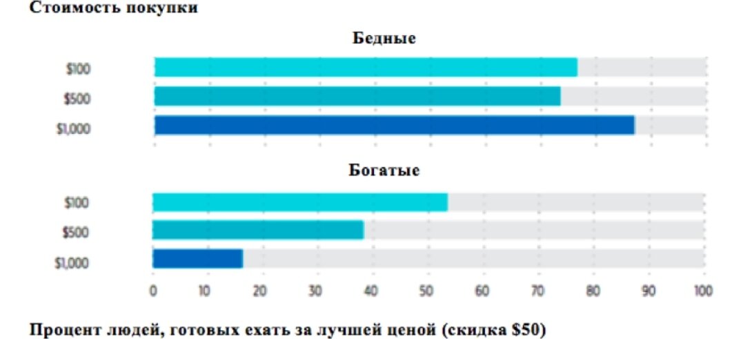 Ошибки поведения – то есть отклонения от рационального поведения – могут иметь разный характер и вызываться разными причинами. Однако психологи, а вслед за ними и поведенческие экономисты, заметили, что часть ошибок поведения носит достаточно устойчивый характер. При этом люди со схожими социальными и демографическими характеристиками склонны совершать схожие поведенческие ошибки, которые получили название поведенческих эффектов (behavioral biases). Поведенческие эффекты — это устойчивые отклонения от рационального поведения, проявляющиеся определенным образом в определенных контекстах, и носящие социальный, а не универсальный характер. В одном из экспериментов Канемана и Тверски, посвященном анализу ментального учета денег, участвующих студентов спрашивали, готовы ли они потратить 20 минут и добраться до другого магазина, чтобы сэкономить 5 долларов (продаваемые товары в двух магазинах одинаковые). Студенты готовы были ехать за лучшей ценой, если цена покупки в первом магазине составл