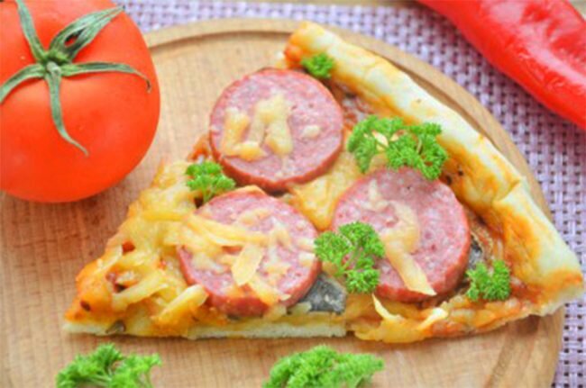 Чтобы побаловать своих любимых и близких, иногда нужно так мало. Пицца с колбасой и грибами, пошаговый рецепт на дрожжевом тесте - помогут любой хозяйке сделать это. К тому же готовится она достаточно быстро и просто, поэтому не отнимет много сил и времени. Смотрите также: Гавайская пицца с курицей и ананасами: рецепт с фото пошагово Ингредиенты: В первую очередь необходимо заняться тестом, так как оно требует определенного времени. Сначала нужно подобрать ингредиенты, который хватит на пиццу диаметром 25 см: для теста: для начинки: Пошаговое приготовление: Сначала необходимо заняться тестом, так как его необходимо будет выдержать в тепле для расстойки. Для его приготовления нужно: Шаг 1. Подогреть воду не выше температуры тела. Это легко проверить - если вы отпустите палец в воду и ничего при этом не почувствуете - значит вода подходящей температуры. Развести в ней дрожжи, соль, сахар. Добавить растител