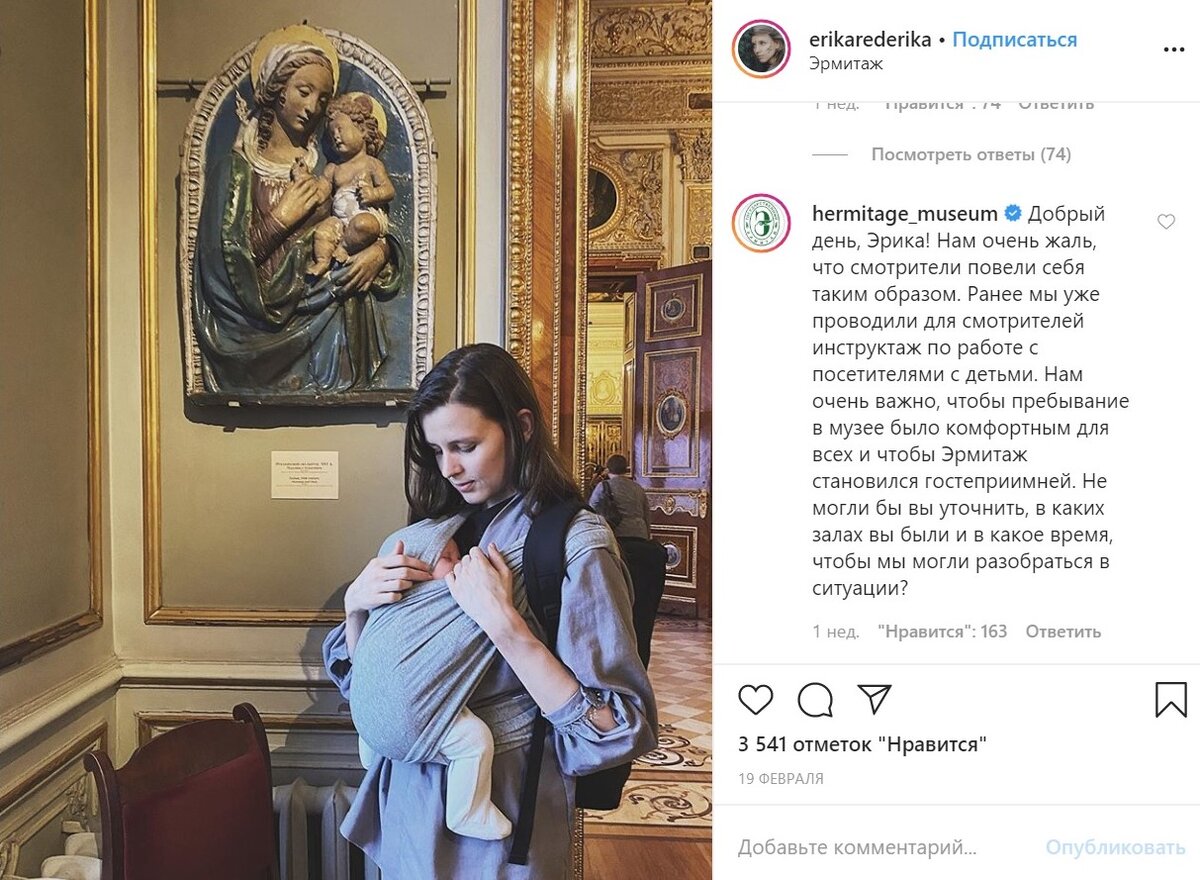 Заметку “Мегаполиса” в соцсети “ВКонтакте” прокомментировала девушка, представившаяся сотрудницей Эрмитажа. "Мегаполис" рассказывал, что Эрика пожаловалась на бессердечных смотрительниц Эрмитажа, которые помешали ей и ее подруге спокойно покормить грудных младенцев во время посещения музея. По ее словам, они нашли укромное и затемненное место, где их никто не увидит, но сотрудницы музея стали их ругать за такое поведение, а потом и вовсе сказали что с детьми следует сидеть дома. По словам сотрудницы музея, женщинам никто не запрещал кормить детей. Конфликт возник из-за того, что мамочки зашли за оградительную ленту, на территорию, куда посетителям заходить нельзя. “Они целенаправленно и специально, зашли за ограждённый объект и сели прямо там! Смотрительницы там и нужны для того, чтобы данного не допускать, а не чтобы мамочек с грудью распугивать”, - возмутилась Вера А. Она отметила, что в Эрмитаже есть места, где можно спокойно и, никому не мешая, кормить детей. В здании работают