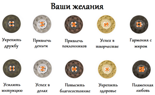 Доброе утро, спешу поделиться действенным и довольно простым в исполнении обряда по исполнению Вашего желания. Данный обряд проводится в новолуние или на растущую Луну. Для его проведения нам понадобится обыкновенная пуговица и любимая одежда, которую вы носите чаще всего. Чем чаще пуговица будет прикасаться к телу, тем быстрее Ваше желание воплотится в жизнь. Обращаю Ваше внимание на то, что цвет пуговицы желательно выбрать тот, который традиционно ассоциируется с тем, что вы хотите привлечь в свою жизнь: любовь - красная; деньги - зеленая; усилить интуицию - голубая; Для творчества подойдет фиолетовая пуговица. Берем пуговицу, зажимаем ее в кулак и загадываем наше желание. Напомню, что желание должно быть четким, конкретным,без частиц НЕ. Пришиваете пуговицу с изнаночной стороны воротника или в районе сердца с изнанки одежды так, чтобы пуговица прикасалась к телу. Выберите рисунок нитей на пуговице, который соответствует вашему желанию (см. фото) Во время последних стежков произнес