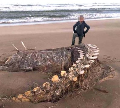 На берег шотландского города Абердин выбросило гигантский скелет неопознанного существа. Об этом сообщается в группе Fubar News на Facebook.