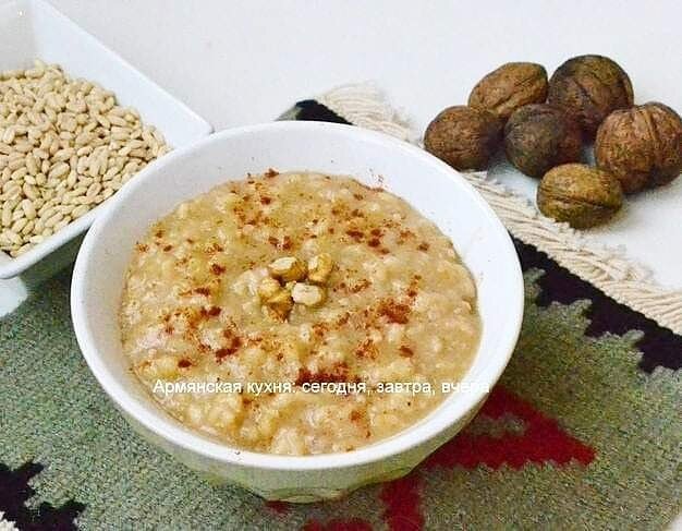 ПОСТНАЯ АРИСА С ОРЕХАМИ Все знают арису с курицей, а этот рецепт не так популярен, а ведь очень вкусно. На два стакана дзавара: 1 стакан дробленных или мелко нарезанных орехов 1-2 луковицы 100-150 мл растительного масла Соль Красный перец Вода 1-1,5 литра, может потом понадобится долить еще немного. Все зависит от дзавара, смотря какой у вас. Замочить на ночь дзавар, на следующий день воду слить, снова залить водой и отварить его, добавить мелко нарезанный и обжаренный на растительном масле лук, орехи. Хорошенько взбить. Посолить и поперчить по вкусу.