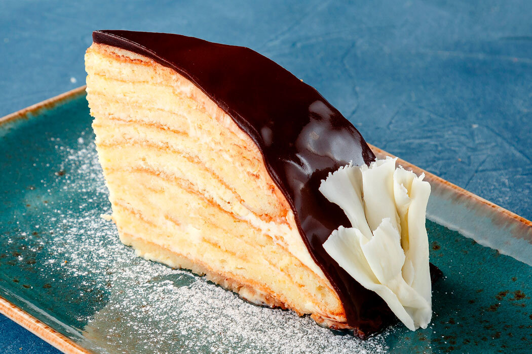 Бисквитное печенье, с шоколадной глазурью и сметанным кремом