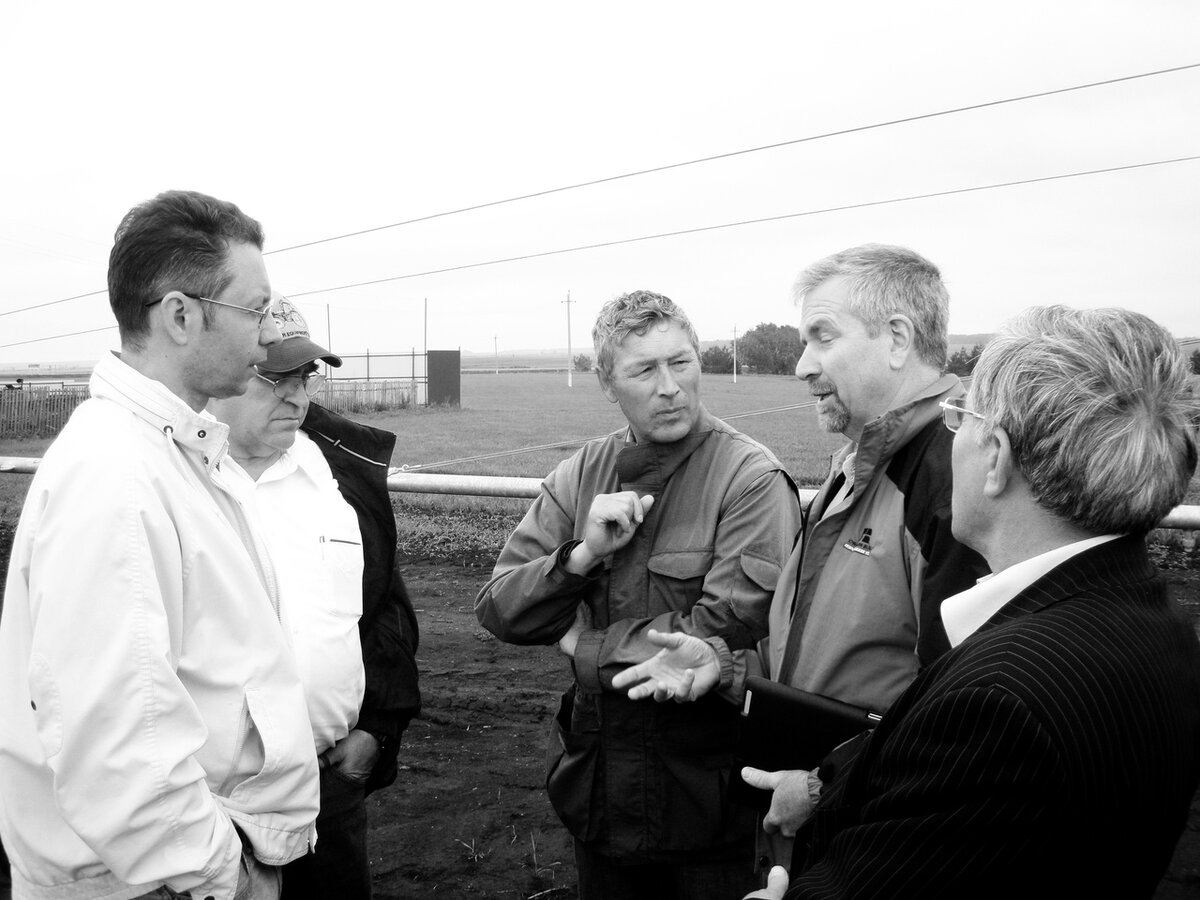 Знает это все Ильшат Нургалиевич не только благодаря своему большому опыту работы на земле, но и благодаря знаниям, полученным из общения со своими заграничными коллегами-фермерами. За последние тридцать лет он побывал в разных странах: в Финляндии, США, во Франции. Там он узнавал, чем и как живут фермеры. Приезжали и к нему учиться. Так, на снимке фермеры из американского штата Айова, которые посетили Ильшата Гумерова в 2012 году.