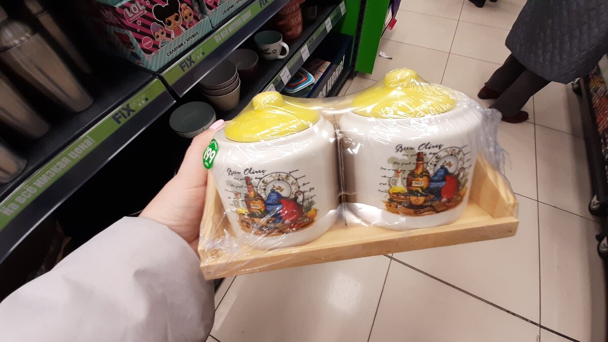 Всем привет! Сегодня я хочу рассказать о самых свежих новинках магазина Фикс Прайс! Привезли туда много симпатичной посуды, которая может пригодится и как подарок на 8 марта. А еще в отдел с различными аксессуарами для ухода привезли много разных спонжиков. Давненько не видела тут обновлений. А так же в Фикс Прайсе всегда много недорогого и полезного товара. НАБОР БАНОК Привезли в Фикс Прайс наборы из двух банок на деревянной подставке. Каждый набор упакован в плотный целлофан. Цена 199 руб. Банки сделаны из доломита, а подставка из сосны. В общем все выполнено аккуратно. Все банки белые и отличаются рисунком и цветом крышек. В нашем Фикс Прайсе нашла три вида таких банок, возможно есть еще. Второй вариант набора на деревянной подставке - это набор из трех предметов. В него входит солонка, баночка под перец и салфетница. Таких наборов тоже несколько видов, можно повыбирать. Цена 199 руб. Баночки так же сделаны из доломита. СУМКА Привезли в Фикс Прайс небольшие круглые сумочки за 199 р