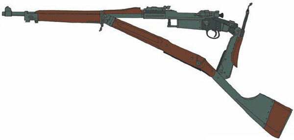 В британской армии пошли еще дальше: винтовку «Ли-Энфилд» за приклад крепили в деревянной или металлической раме, на которой кроме перископа, грубого ложа и спуска с тросиком монтировали еще и приспособление в виде щеколды, связанной тягами с затвором винтовки. Англичане догадались, что подобную конструкцию необязательно производить серийно, ее можно собирать на месте из подручных материалов, а для этого достаточно разослать чертежи приспособления непосредственно в войска.