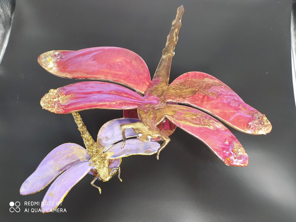 Скоро весна. И я буду украшать свой сад. Вот таких замечательных стрекоз я сделала. Выполнены они из моей любимой смолы. Так что ни снег, ни дождь им не страшен.