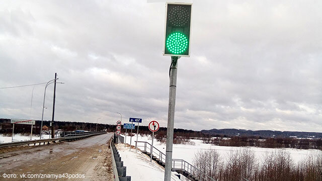 Двухсигнальные светофоры у въездов на мост через Юг в Посёлке Подосиновец были установлены специалистами кировского ООО «Магистраль-проект» прошлым летом, чтобы обеспечить реверсивное движение транспорта в ходе ремонта сооружения, который вела бригада казанского ООО «Мостострой».