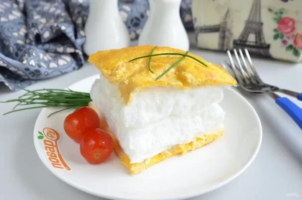 Вкуснейший омлет который полюбит ваш ребенок. Приветствую вас дорогие читатели в этой статье я предстовляю вашему вниманию рецепт омлета 《Пуляр》. Готовится он легко ,получается нежным и вкусным !Любой малоежка будет в восторге. Нам понадобятся: Яйцо -4шт Сливки 2 ст.л Соль 1-2 шипотки Сливочное масло 10 гр Способ приготовления: 1.Отделите белки от желтков 2.В желтки добавьте пару ложек сливок,щипотку соли и вилочкой перемешайте. 3. Белки взбейте со щепоткой соли до устойчивых пиков. Хорошо охлажденные белки взбиваются мгновенно, сначала на небольших оборотах миксера. А когда появляются крупные пузыри, переключитесь на максимальные обороты и доведите до пиков. 4. Сковороду прогрейте, смажьте кусочком сливочного масла, перелейте желтковую массу и дождитесь, пока она чуточку схватится. 5. Лопаткой распределите белковую массу сверху, разровняйте. На медленном огне (без крышки!) готовьте омлет. Чтобы проверить омлет на готовность, коснитесь белка пальцем. Если он уже не липнет, значит, гот