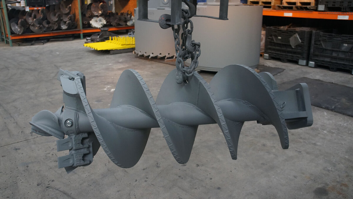 Весь инструмент изготовлен съемным. Это важно, так как при раздельном исполнении шнеков и буров можно менять комплектацию бурового инструмента прямо на месте бурения, что повышает возможности производственных решений и увеличивает ресурс инструмента. Здесь же, на участке бурения, можно произвести замену бура со скальными резцами на бур с резцами под более мягкий грунт.