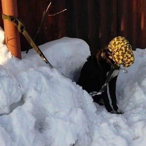 От собаки решили избавиться и сделали так, чтобы она не увидела, куда её ведут. По словам очевидцев, это сделала девушка.