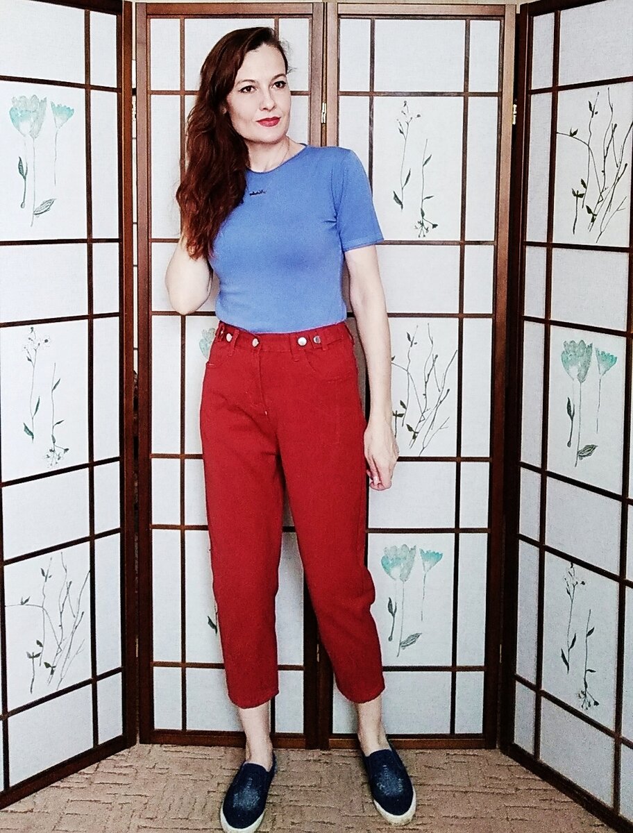 Модные Moм джинсы с сайта Алиэкспресс. Джинсы отличного качества в красивом терракотовом оттенке. Материал : настоящая толстая и плотная джинса, совсем не тянется. Модель брюк свободная, с высокой линией талии. Размер я взяла М на свои параметры : талию : 63 см и бедра 90 см. Джинсы сели в талии довольно плотно, в бедрах слегка свободно. Длина брюк на рост 170 см получилась укороченной, выглядят они почти как капри.. Ссылка на брюки : https://s.click.aliexpress.com/e/_eOU4Dx?product_id=4000468780093 Спереди джинсы застегиваются на серебряную пуговицу заклепку, по бокам на поясе есть хлястик и еще 2 пуговицы для регулировки объема. Карманы спереди полукруглой формы, с вытачкой посередине. Сзади два стандартных кармана. Брючины снизу имеют по 2 защипа, которые немного сужают их. Очень классные брючки, удобные и практичные, буду с удовольствием носить их весной и летом. Рекомендую. 💗