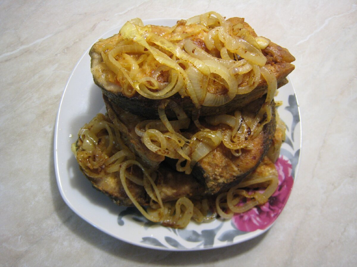 Здравствуйте, уважаемые подписчики и гости моего канала. В очередной раз мне посчастливилось стать обладателем нескольких огромных толстолобиков. Хороший знакомый рыболов упорно снабжает меня этой рыбой. Это было сравнительно недавно и я уже готовил из неё уху, рыбные котлеты, рыбные тефтели и т.д. Спросив его, что он с ней делает в таком количестве, я узнал множество рецептов, но самый простой из них - это рецепт жареной рыбы с луком и приправой. Приготовил я по этому рецепту и мне очень понравилось, поэтому решил поделиться им с вами.