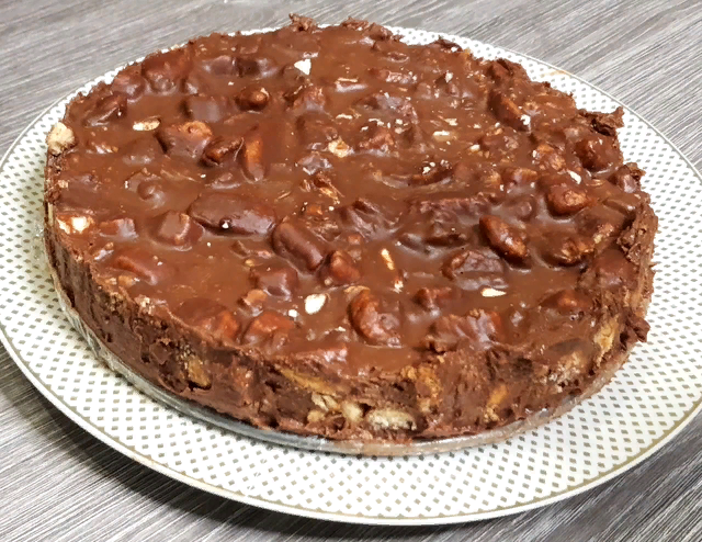ИНГРЕДИЕНТЫ ПОШАГОВЫЙ РЕЦЕПТ ПРИГОТОВЛЕНИЯ 1. Разломать на средние кусочки печенье и белый шоколад, порубить орехи Все соединить 2. В отдельной емкости мелко разломать темный шоколад 3. Соединить сливки и сливочное масло, довести до кипения 4. Горячую смесь влить струйкой в темный шоколад. Перемешать 5. Остывшую смесь добавляем к орехам, печенью и белому шоколаду, аккуратно перемешать 6. Форму застелить пищевой пленкой, заливаем полученную массу. Убрать в холод на 3 часа Украсить, посыпав сверху какао ДОПОЛНИТЕЛЬНАЯ ИНФОРМАЦИЯ Смесь может выглядеть немного жидкой, но на холоде она скрепится. Всем приятного аппетита!!!!