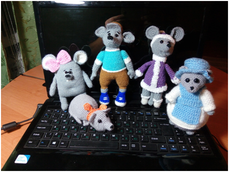 Продолжим тему игрушек. Многие взрослые до сих пор можно сказать любят «играть» в игрушки. Женщины умеющие вязать проявляют себя в том, что создают шедевры из ниток. Мужчины делают игрушки из дерева или из другого материала. Год наступил мышиный т.е. год мыши. Перед праздником хотелось родных и знакомых, порадовать каким - небудь подарком. Мне пришла мысль связать символ года. Вязала без всякого образца. В мыслях придумывала какую мышь связать, как она должна выглядеть. И начинала работу. Голова вязалась с носика, потом привязывались ушки, далее делались глазки. Получалась мордашка. Дальше фантазия разыгрывалась. Делала туловище, придумывала одежду. Получались, как мне кажется интересные зверьки. Родных и знакомых много, и подарков получилось много. Раз мыши в доме есть то и должны быть кошки. Чтобы игрушки были с пользой, кошек связала в виде подушек (т.е. подушки в виде кошки). Подушки вносят теплоту и уют в любой интерьер предназначены для того, что