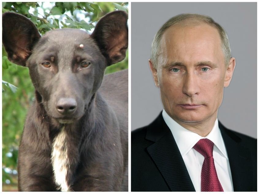 В Киеве нашли похожую на Путина собаку 20.09.2013 10:40 В центре Киева местные жители нашли собаку, морда которой похожа на лицо российского президента Владимира Путина. Необычное животное темного окраса с белым "галстуком" обнаружили на главной киевской улице - Крещатике. Фотографии пса с пронзительным взглядом появились на страницах украинских СМИ вечером в среду, 18 сентября. Первое фото собаки, похожей на Путина, опубликовало интернет-издание "Обозреватель". Портал указал лишь место съемки, не приводя иных подробностей. Определить породу собаки по фото довольно сложно; собачники, опрошенные корреспондентом "Моего района", предположили, что это помесь стаффордширского терьера и овчарки. Пользователи интернета, комментируя фото собаки, вспомнили цитаты из "Собачьего сердца": "Он это, он!... Только, сволочь, опять оброс". Другие назвали животное "Чупакаброй", а третьи заявили, что это не собака похожа на президента России, а Путин на нее.