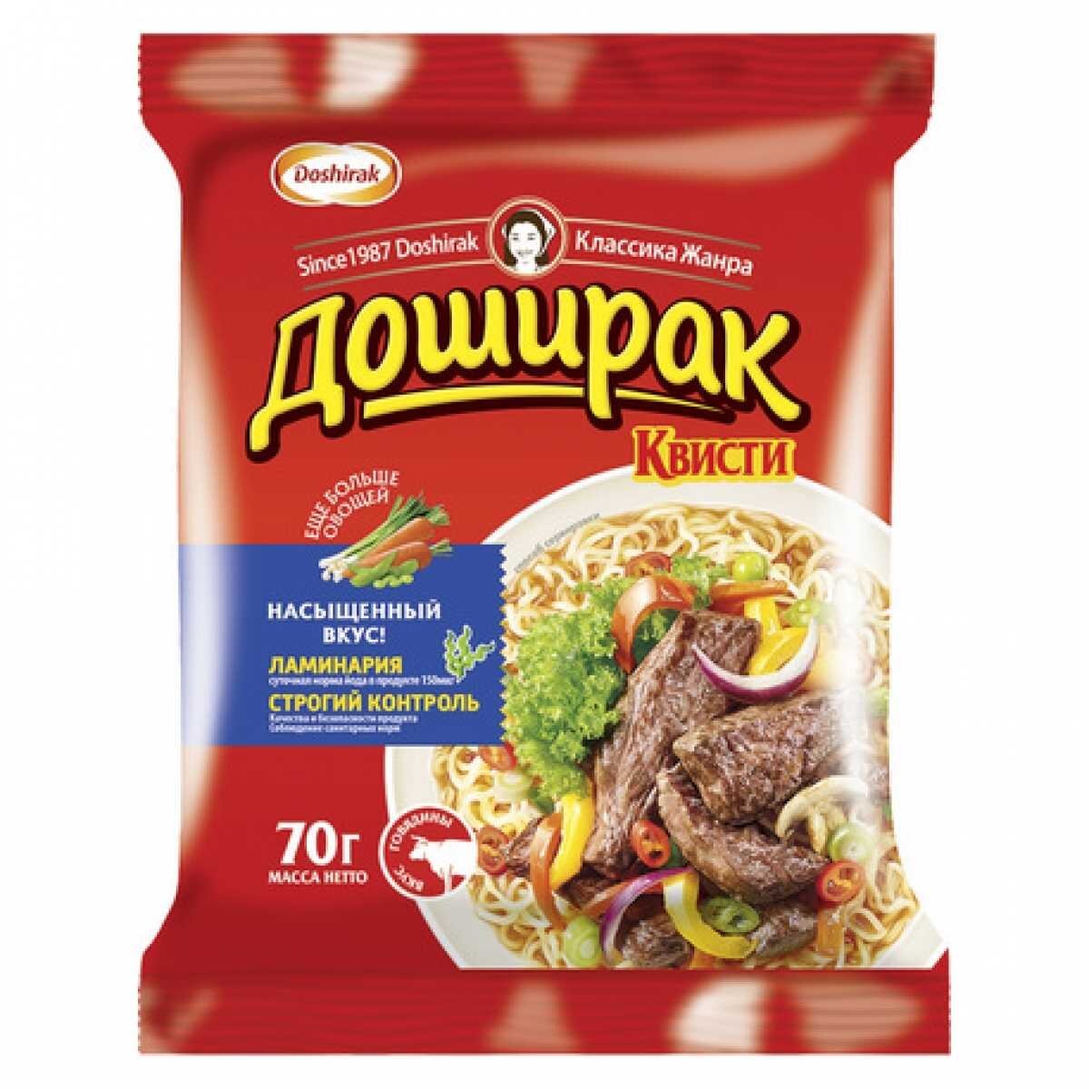 Несчастный Доширак принято обвинять во всех смертных грехах вплоть до язвы желудка.Смотрим состав (на упаковке вкуса «курица») вещества указаны в порядке убывания: Пшеничная мука высшего сорта – штука хорошая, но лишённая полезности Пальмовое масло - богато каротиноидами (т.е. содержит, пусть даже в небольшом количестве, провитамин А) и пальмитиновой кислотой (по данным Википедии пальмовое масло содержит 39—47% пальмитиновой кислоты, коровье — 25%, соевое — 6,5%, свиное сало — 30%) которая в свою очередь повышает уровень холестерина и как следствие риск сердечных заболеваний. При массе нетто 90 грамм и пользы и вреда мы получаем в минимальных количествах. Модифицированный крахмал - не относится к генетически изменённым продуктам! В данной лапше он применяется для улучшения качества изделия и не оказывает никакого вредного воздействия на здоровье человека. Соль - о ней можно говорить часами, но уже доказано, что в десятки раз больше пользы, чем вреда Сушеный лук Ламинарии порошок – вод