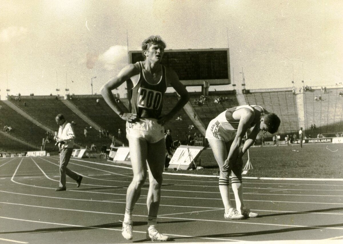 Эстафету мы тогда выиграли, а со мной произошел курьез – готовясь передать палочку партнеру, споткнулся на скорости и, потеряв ориентацию, ударился икроножной мышцей о ребро стола, который стоял около дорожки. В целом, обходясь без травм, я стабильно преодолевал четырехсотметровку в среднем за 46 секунд. Особенно мощно разогнался на «Европе» в Будапеште в марте 1983-го. Там иное, чем в «Крылатском», покрытие манежа – под резиной вместо бетона лежала толстая фанера, которая пружинила, что идеально соответствовало моему бегу с сильным проталкиванием. На этих стартах я побил рекорд СССР. Мое время могло быть и лучше. Но последние 20 метров мчался с поднятыми руками – так захлестнули эмоции. Из-за этого потерял ценные доли секунды.