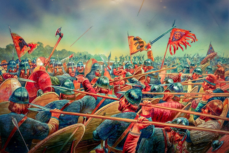 Вторжение в Англию началось в 1066 году, а началось оно с победы нормандцев в битве при Гастингсе, после чего королем Англии стал герцог Вильгельм. Вкратце: Битва при Гастингсе - сражение между Саксонией и норманнами.Битва длилась более 10 часов, что является редкостью для тех времен.В той битве пал каждый саксонец включая самого короля и двух его братьев, после чего на престол встал Вильгельм. В ходе войны силы сторон были не равные. Саксонский военный ресурс был достаточно большим, но был плохо организован. Не было даже постоянного флота, хотя его можно было организовать, но содержать в постоянной боевой изготовке не было возможности. Сухопутные войска состояли из королевской гвардии, в ней было порядка 3000 воинов, а на каждого ярла приходилось по 500 человек, довольно не плохой показатель. Но в чем же собственно была проблема!? Проблема заключалась в трудности собрать все свои силы в одном месте и удерживать их долгое время, так же отсутствие таких родов войск как лучники и кавалер