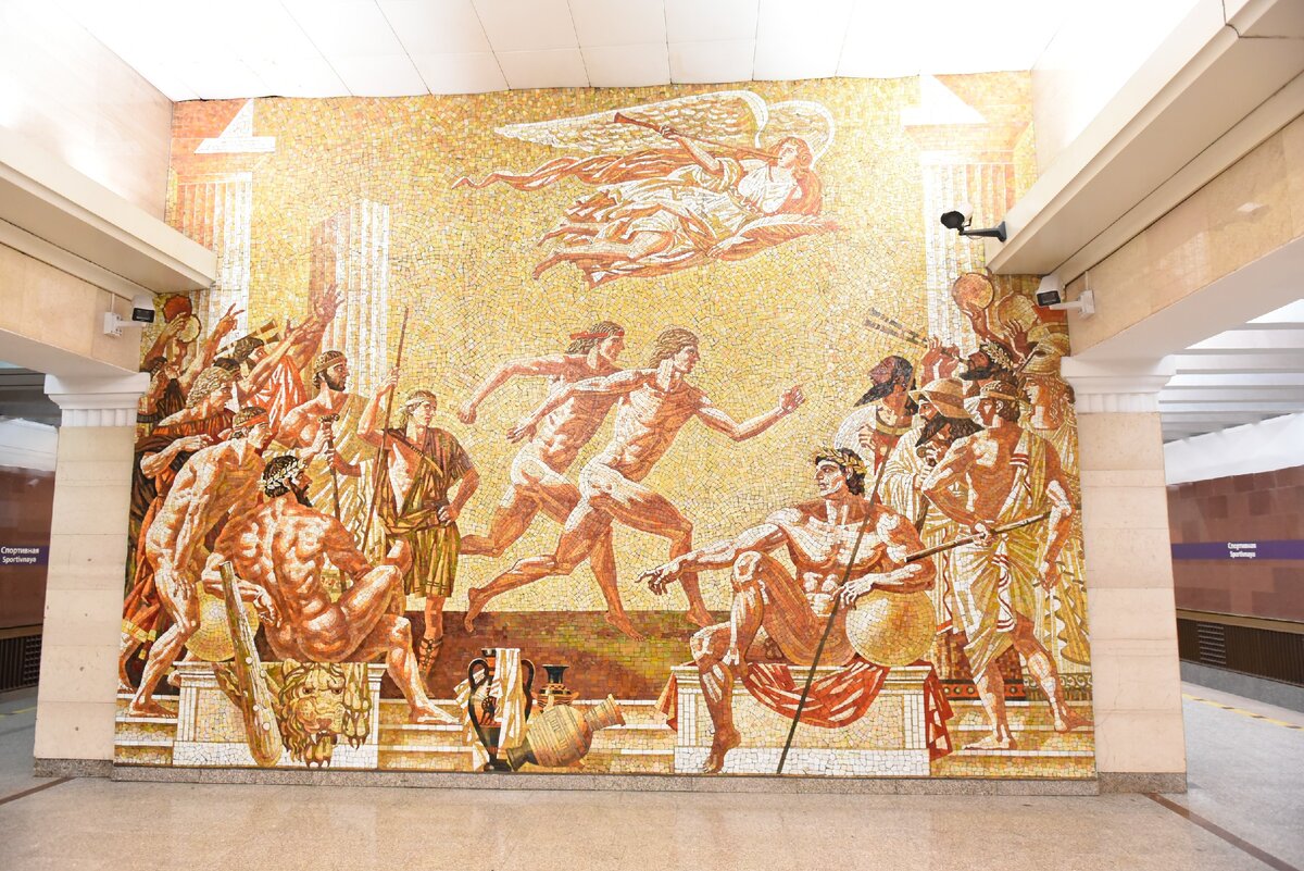 Добрый вечер мои дорогие читатели. Наше петербургское метро не только одно из самых глубоких в России. Но и самое красивое после московского. Однако мировые стандарты красоты и толерантности, увы докатились и до него. Яркий тому пример, станции метро "Спортивная" и Международная. Если вы ещё не были на них, то обязательно посетите, чтобы понять о чем я говорю. Станция метро "Спортивная". Открыта 15 сентября 1997 года. Символизирует собой прославление спорта на примере олимпийских игр в древней Греции. Стены станции украшены многочисленными панно с обнажённой натурой. Там изображены как мужчины так и женщины. Прям настоящий музей изобразительного искусства под крышей метрополитена. В то время никто не думал что-либо прикрывать. Изображали атлетов такими, какими они и были при жизни. Потому что искусство не может быть пошлым, в отличие от восприятия человека. Думаю, что вы поняли о чем я говорю. А теперь посмотрите на станцию метро "Международная". Там в вестибюле тоже есть очень з